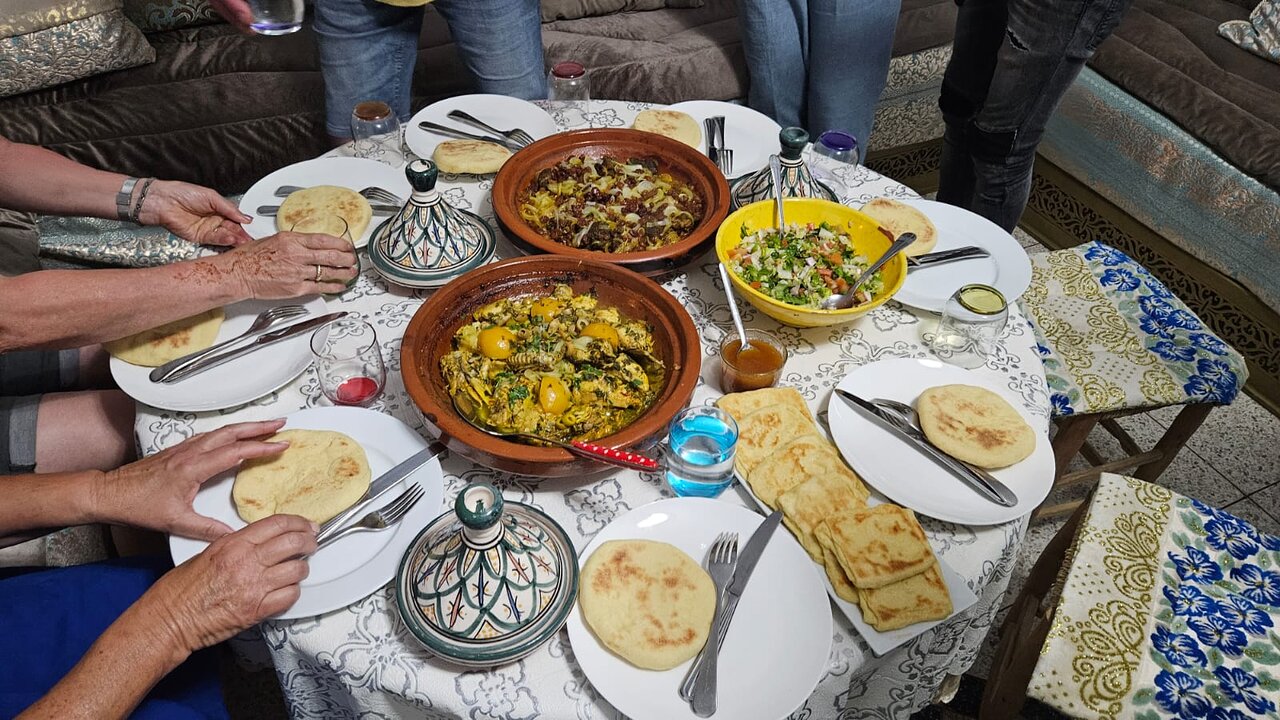 Visit a local market (optional), select fresh ingredients, prepare traditional dishes such as tagine or couscous, and enjoy a shared meal in a warm atmosphere.